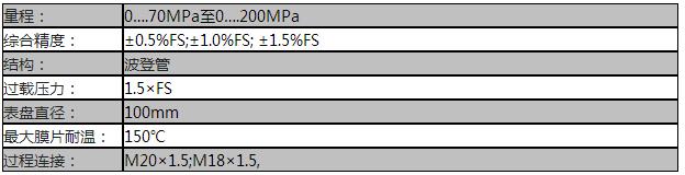 额定量程:0~70MPa~200MPa